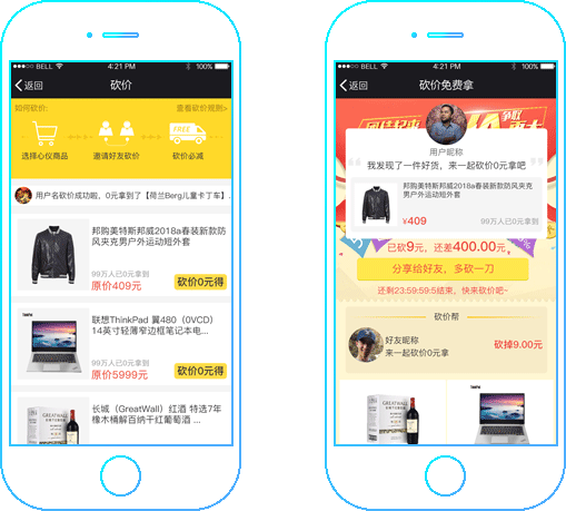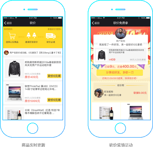 自主创建线上砍价,用户即砍即减